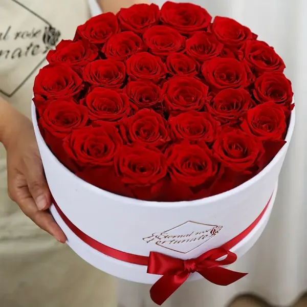27 Preserved Red Roses – Round Velvet Hat Box