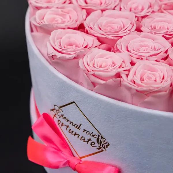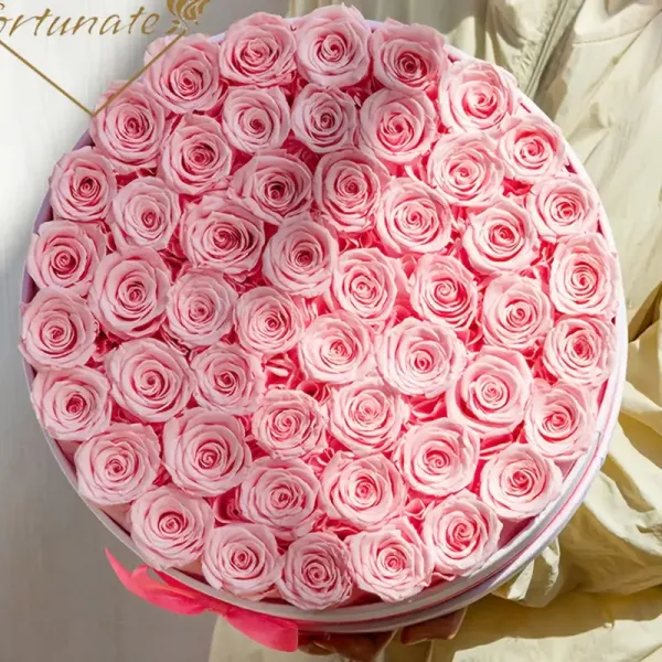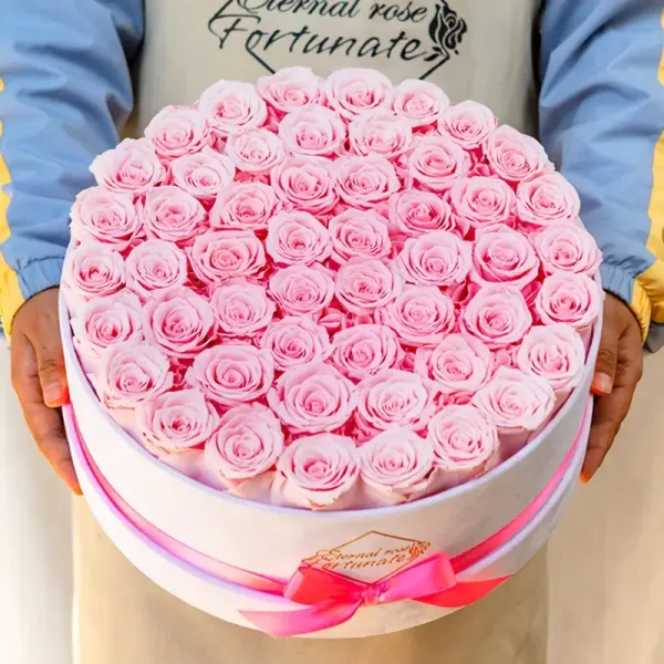 50 Preserved Pink Roses – Oversized Velvet Hat Box