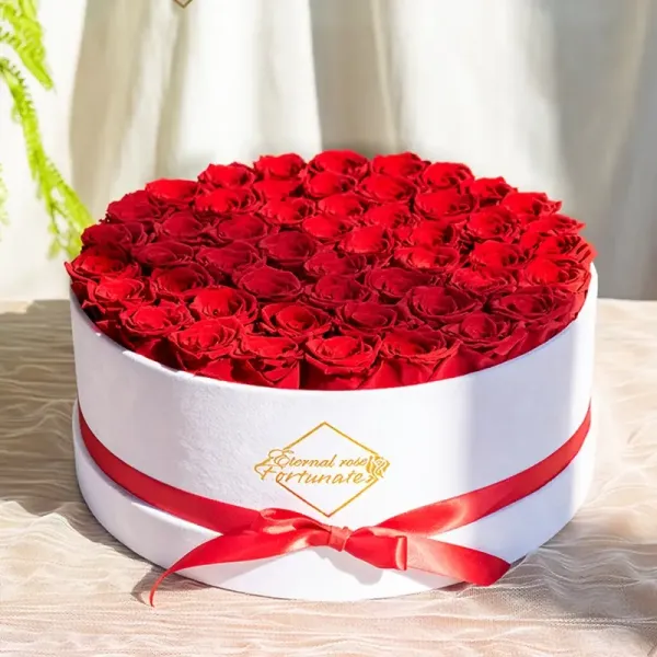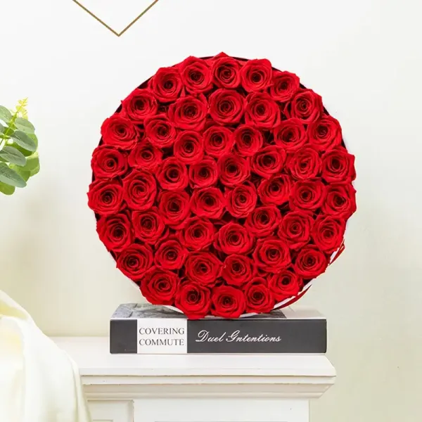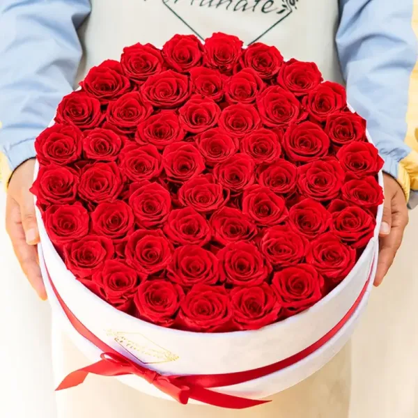 50 Preserved Red Roses – Oversized Velvet Hat Box