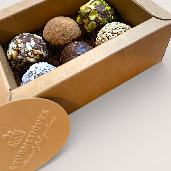 Your choice of our two fun size boxes containing your choice of date ball varieties, including pistachio, sesame, coconut, chocolate, cocoa etc!